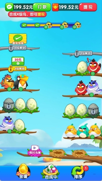 合成的小鸟等级越高,挑战难度就越大,不过对应的红包奖励也会更加丰厚。
