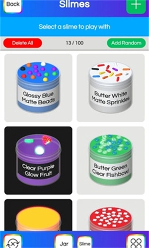 在首页点击黏液按钮后,你既可以挑选游戏自带的各类黏液,也能借助随机功能生成一款独一无二的黏液,还能亲手打造出全新的黏液。