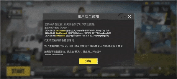 近期若账号有新增绑定操作,或是有存在风险的新设备曾登录,系统会弹出提醒。当你收到这类提醒时,意味着账号可能正面临安全风险,请核实相关操作是否由你本人进行。如果不是你本人操作,建议通过开启双重验证、修改登录密码等方式来增强账号的安全性。