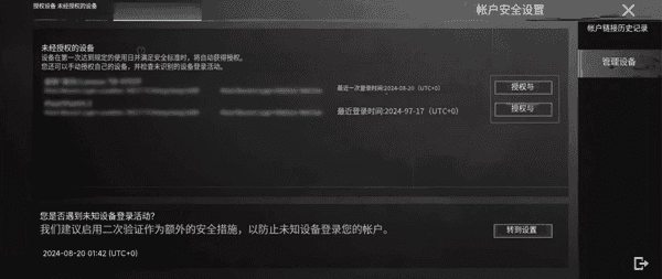玩家能够对登录账号的安全装置进行管理,既可以撤销已授权装置的权限,也能够对新装置进行授权操作。