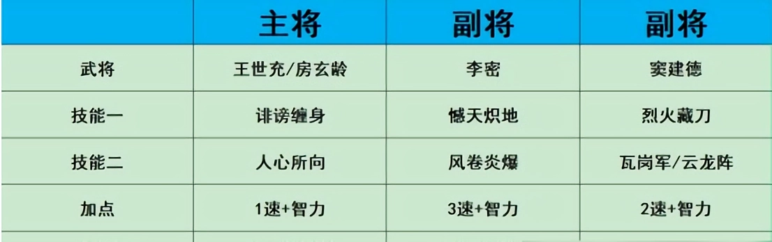 若能搭配上带有“诽谤缠身”效果的角色,王世充或房玄龄都可担任主将;要是没有这个效果,就由李密做主将,并且优先培养李密。这支队伍的输出能力较强,再加上房玄龄放弃羁绊的话,控制效果会更加出色,无论是攻打城池还是挑战副本爬塔都十分实用。不过在战斗方面,由于存在兵种克制的问题,同时也没有特别适配的兵种技能,所以会处于劣势。NPC身上拥有专属的兵种技能,但我们无法获取,这一点挺让人不舒服的。
