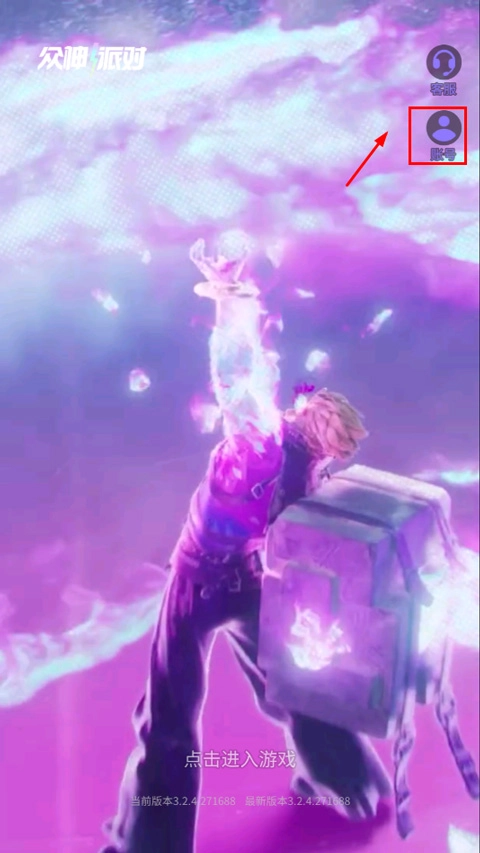 首先启动众神派对这款游戏,进入游戏界面后,找到并点击左上角的头像图标。