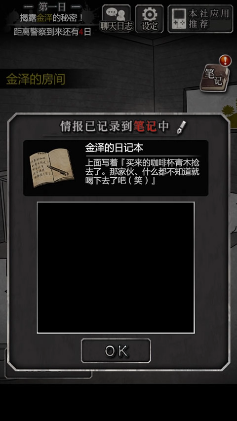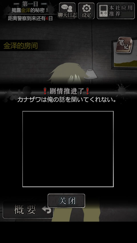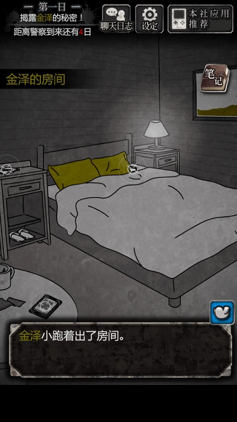 前往三楼金泽的房间,和金泽进行对话,这样就能触发“可以查看金泽的房间了”这一进程。