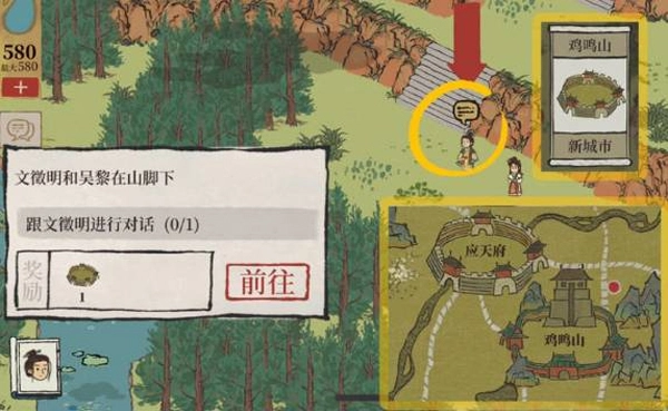 第一步:前往虎丘,和文徵明、吴黎完成对话,就能解锁新城市鸡鸣山。