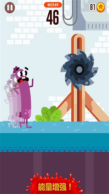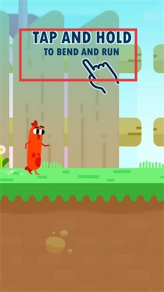 根据【TAP-AND-HOLD-TO-BEND-AND-RUN】的提示,长按屏幕就能操控香肠完成弯曲奔跑的动作,以此避开路上的各种障碍。