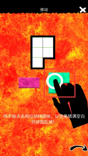 根据游戏指引,用手指点击图块拉动到拼图处。