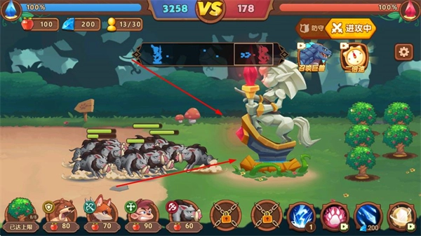 在对战过程中指挥己方单位集群发起进攻,凭借数量上的优势压制敌方防御设施,从而快速积累对战积分,进一步扩大自身优势。