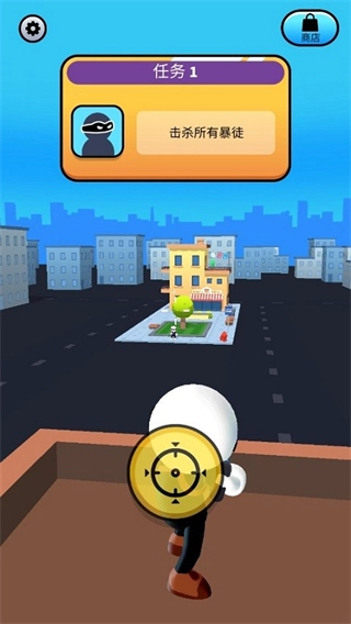 打开约翰尼狙击戏,直接就在关卡内开局,点击下方的瞄准按钮击杀目标。