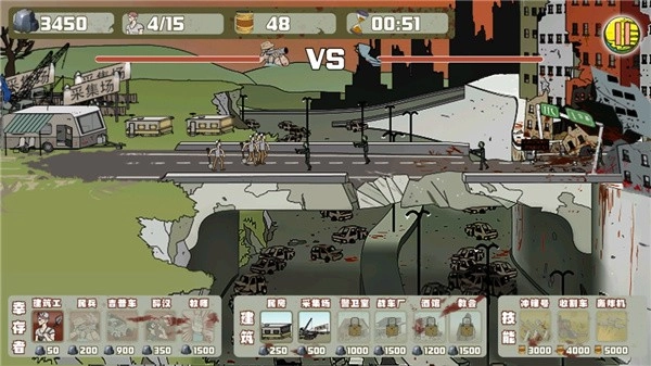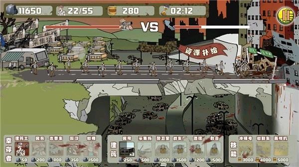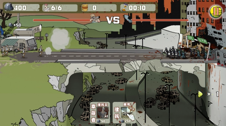 游戏界面顶端能看到双方基地的血量,我们可以派遣幸存者发起进攻。