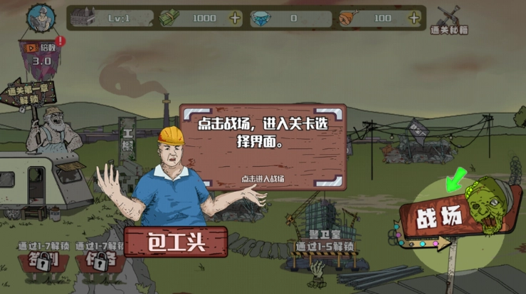 先别管僵尸,持续点击第二个建筑(金钱站),直到它升到2级(此时基地血量会降到一半以下),然后生产两个工兵(初始兵种,每个50资源);接着继续点击金钱站升级到3级,再生产三个工兵。总之,优先把金钱站升到满级,之后疯狂生产工兵抵御怪物,直到攒够钱升级1000资源的建筑和1500资源的机车招募建筑;最后升级250资源的人口站,然后全力生产机车就行。