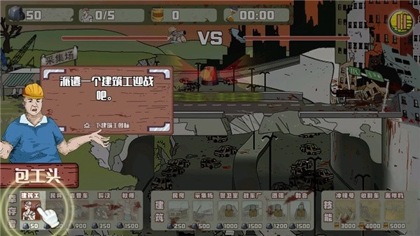 《建筑队大战僵尸(建筑工也疯狂)》的玩法类似《植物大战僵尸》的滚石头模式:你的城市已被僵尸全面感染,唯有城市另一侧的绿坡幸免于难。你需要指挥建筑工人抵御蜂拥而至的僵尸——它们会沿大桥缓缓逼近,企图占领你的领地。你得持续部署建筑工人及其他武装道具守护家园,能否撑到游戏结束,全看你的策略与操作!