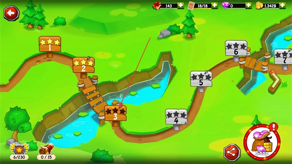 进入岛屿关卡的选择界面后,点击尚未获得星星的关卡,即可开启挑战。