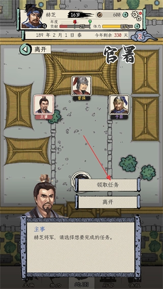 在地图里找到官署,点击主事并和他沟通,接着点击领取任务就能进入剧情了。