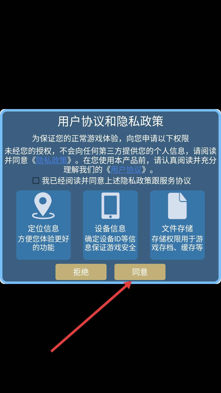 进入游戏,点击【同意】。