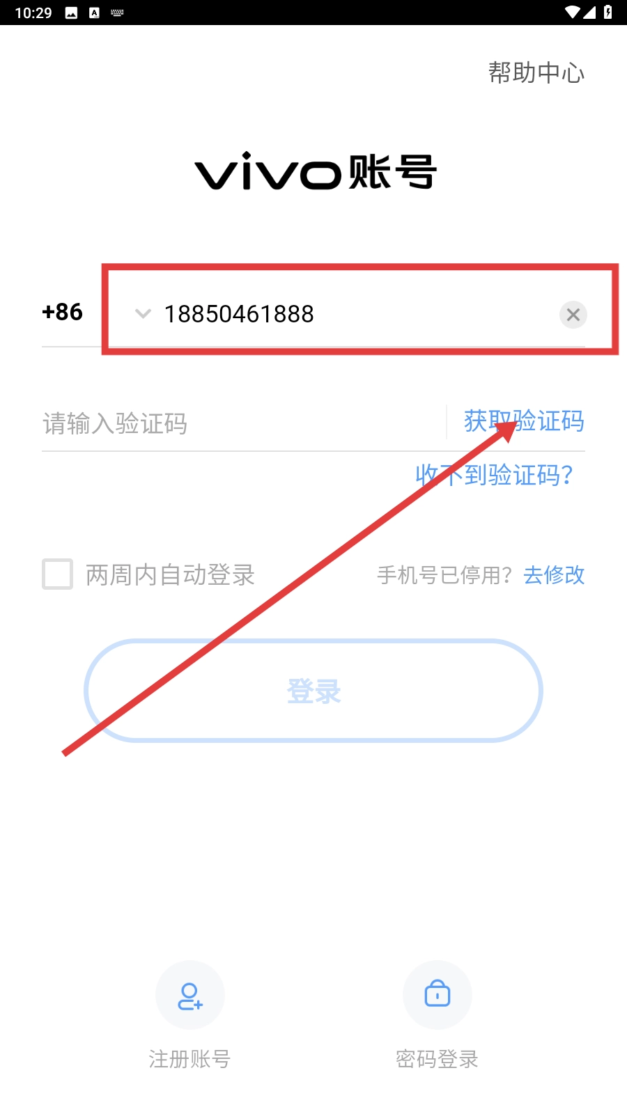 输入手机号码,点击【获取验证码】。