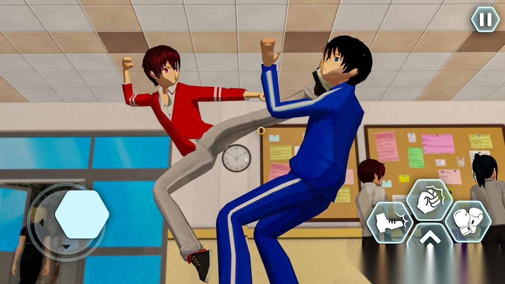 动作系统丰富多样,除了基础的拳脚攻击外,还可运用书包投掷、粉笔头射击等充满校园特色的招式,连招组合的自由度颇高,战斗体验畅快且流畅。