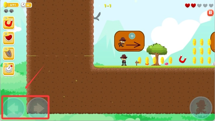 进入游戏后,点击左下角的按键就能操控角色移动,右下角的按键则用于角色跳跃。