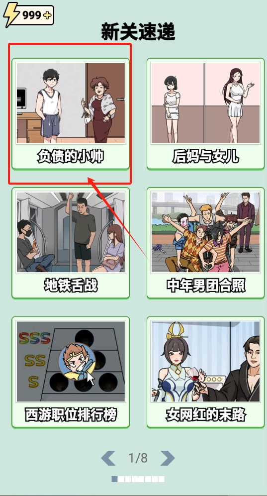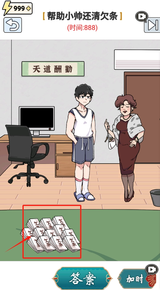 点击“负债的小帅”关卡,查看帮助小帅偿还债务的任务说明,需在888秒内完成该任务。