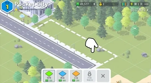 点击建造按钮,铺设道路或建造各类建筑;