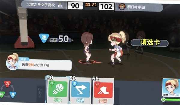 在游戏对局里,教练能通过选择行动牌来指挥球员行动,借助不同属性间的克制关系和对手展开策略博弈。就算没有复杂的操作,也能让篮球少女完成一连串极具观赏性的扣篮、突破等精彩动作!