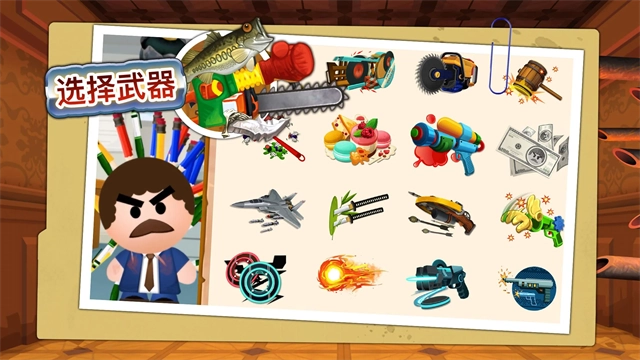 海量武器库藏:80余种脑洞大开的武器任你挑选,从科幻感十足的激光剑,到生活中常见的马桶搋子,每种武器都有独特击打特效。