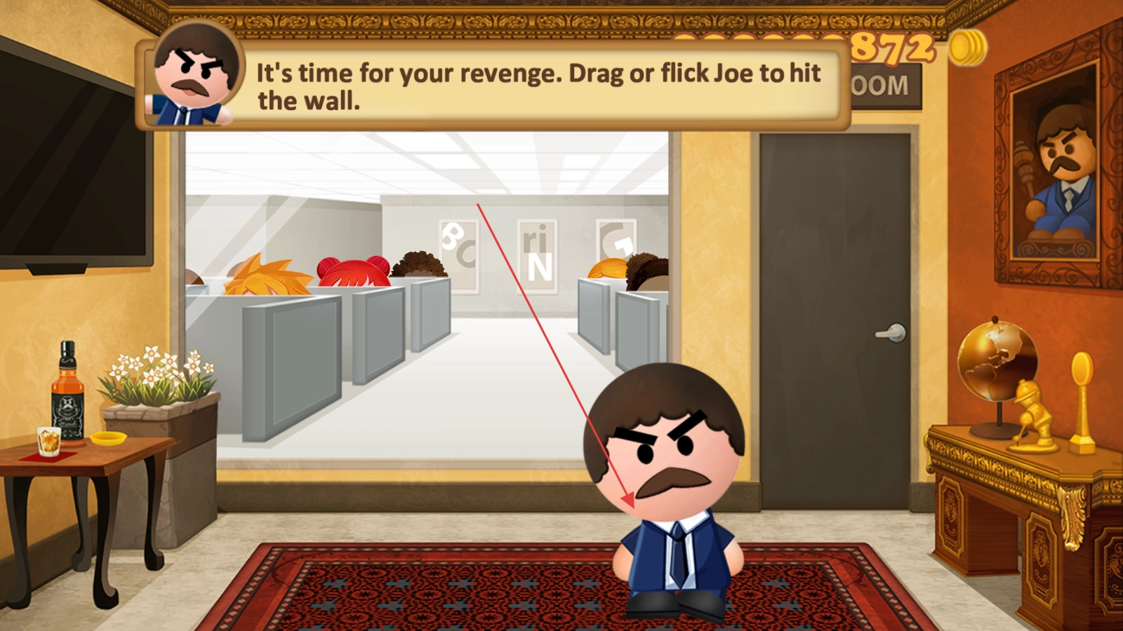 进入游戏后,按照提示,通过拖拽或轻弹角色Joe,让他撞击墙壁,从而完成与复仇有关的任务。