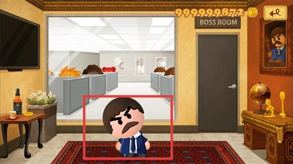 进入游戏主场景后,能看到办公室和“BOSSROOM”的标识,接下来就可以开启和老板的互动玩法了。