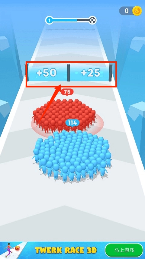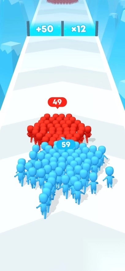 控制火柴人队伍向前行进,途中会碰到带有运算符号标识的门户,得依据当前队伍人数挑选最优的运算方式,一旦选择错误就会造成人数大幅减少。