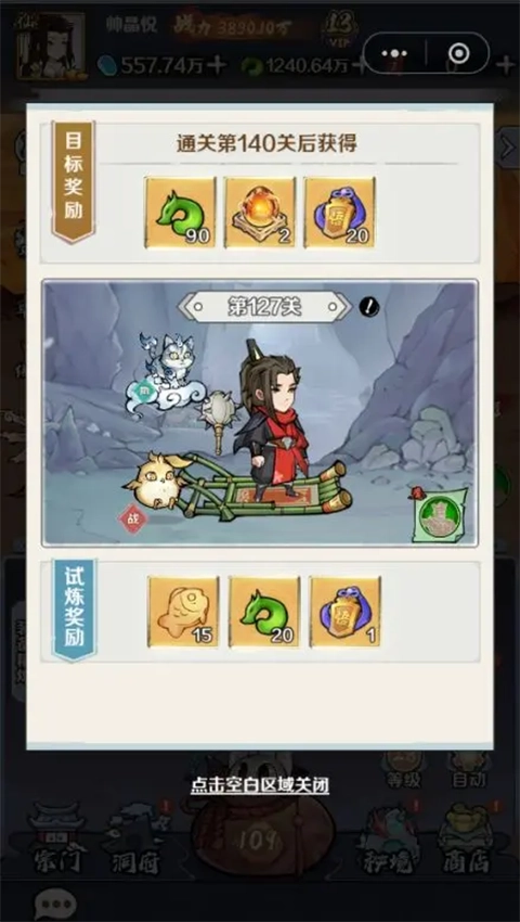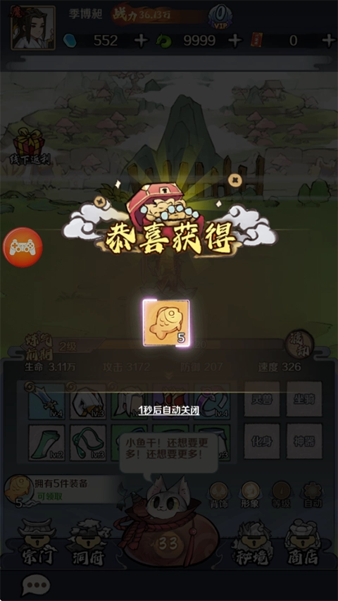 奇幻的修仙世界,通过翻找百宝袋获取各种装备,提升角色属性和战力。