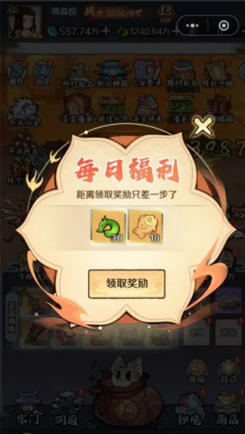 每在线满一定时长,主界面就会出现一个飘动的红包,点击即可领取每日福利。每天最多可领取5次,每次能获得30仙玉和10个小鱼干,记得按时领取呀!