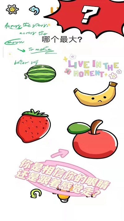 若想了解不同水果之间的相对尺寸关系,你可以点击屏幕底部中间位置的灯泡图标,以此来获取水果大小比较的相关提示,从而辅助判断它们的尺寸关系。
