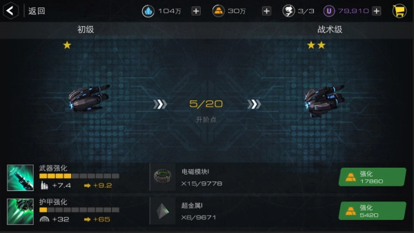 强化战舰所需材料的重要获取途径有两个,其中一个是通过讨伐叛军功能来获取材料。若想更快提升舰船能力,我们可以尽量攻打讨伐叛军的关卡;而且在讨伐叛军的战斗中途退出不会造成其他损失,所以我们可以多次尝试,以此找到最佳的进攻角度和战舰组合。