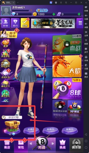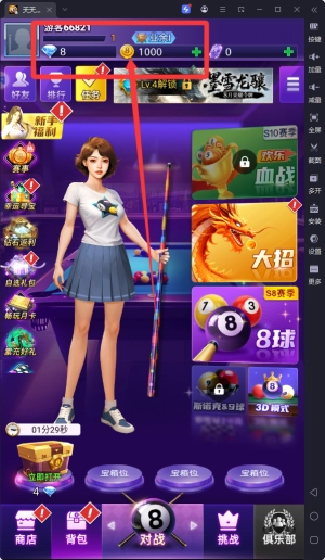 玩家可以选择冒险模式来体验简单有趣的台球玩法,通过战胜对手赢得奖励和道具,以此提升游戏体验,增添游戏的趣味性。