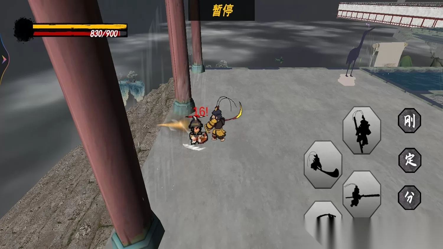 1. 把神话故事和像素风格相融合,玩家操纵悟空于西游世界展开冒险,感受别具特色的传奇旅程。