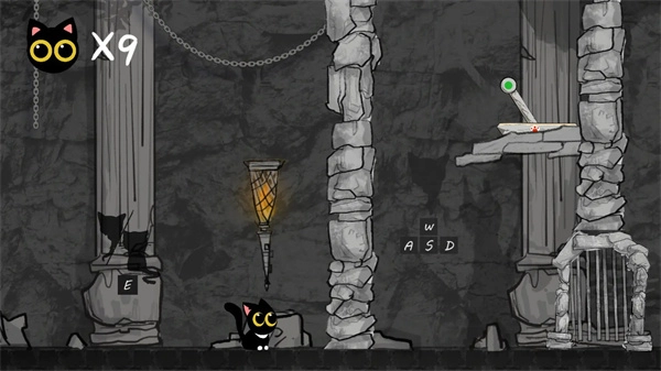 在关卡里,操控小猫走向拉杆的位置,点击按钮就能让石柱或者机关转动。要是有到不了的地方,可以点击技能键进入灵魂状态,把灵火点燃。玩家通过自己的努力成功闯过所有关卡,最后救出了主人。