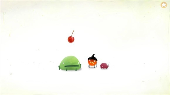 接下来点击那个绿色的怪物,挑选第三个选项把怪物移开,不过樱桃掉落之后又重新弹回到了怪物的身上。