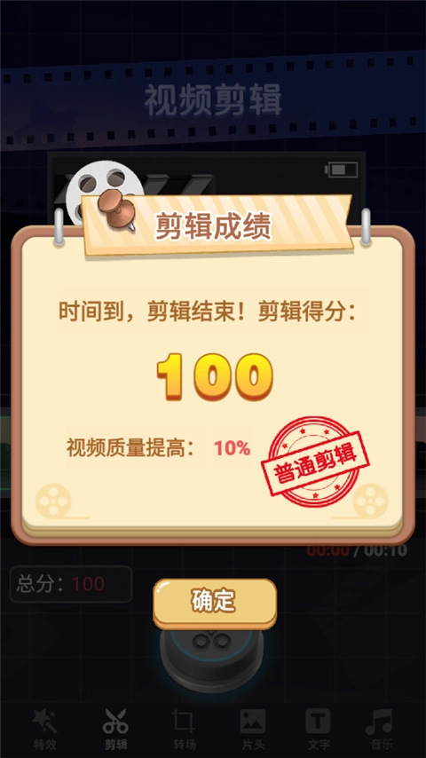 剪辑完成后,你获得的剪辑得分会对视频质量提升的成果产生影响。