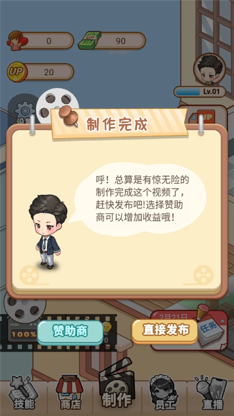 《我要当UP主》是一款创意十足的模拟经营游戏,玩家将化身怀揣梦想的年轻人,立志成为顶尖视频博主。在游戏中,你可以制作并发布各类视频内容,以此吸引粉丝关注、提升视频播放量,一步步朝着“百万UP主”的目标迈进。