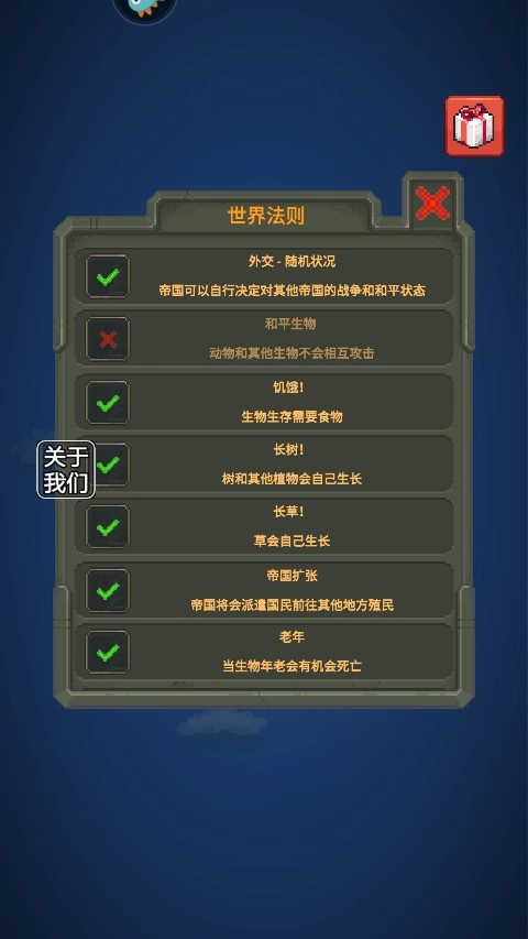 《疯狂世界盒子》是一款模拟创造游戏,玩家将化身星球的“造物主”,以上帝视角创造或毁灭世界。游戏全程充满自由掌控感,你可以释放不同种族,观察它们的发展轨迹,凭借智慧与决策助力其更快建立文明。这里玩法丰富多样,自由度拉满,你能随心所欲塑造专属世界,还有更多趣味玩法等你探索体验。