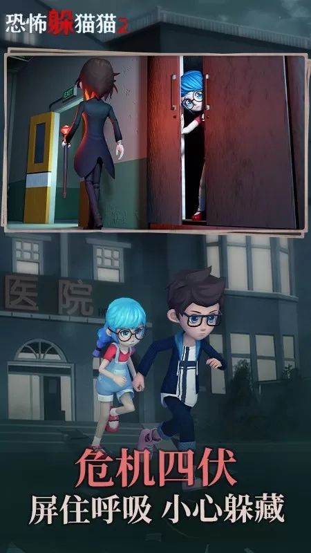 《恐怖躲猫猫2》是一款以恐怖暗黑风格为主题打造的休闲竞技游戏。在游戏里,玩家会置身于寂静且荒芜的医院场景,在这里展开探索、躲藏以及搜寻行动。游戏有着极为完整且注重细节的剧情故事设定。无论是在竞技还是闯关时,玩家都需留意从危机四伏的医院环境中挖掘所有秘密,进而解开谜团真相。但在此过程中,务必保障自身安全,确保能成功逃离,不然就会直接闯关失败,需重新开始。而且,作为躲藏者或抓捕者,要明确各自的主要任务。游戏精心打造了精致细腻的人物造型,提供各式各样的角色供玩家随意挑选使用。这些角色不仅具备全新的外观风格,还拥有各不相同的技能属性。感兴趣的小伙伴,快来体验一番吧!