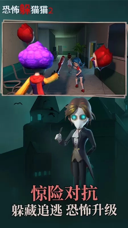 《恐怖躲猫猫2》是一款休闲竞技对抗游戏。延续了第一代《恐怖躲猫猫》的非对称对抗玩法的同时,加入了实时追逃躲藏玩法。强化了实时互动对抗性。游戏模式也延续一代的躲藏者与抓捕者双模式,让玩家体验两种不同的乐趣。