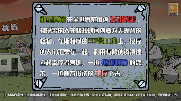 接下来为大家介绍背景设定:一种来自外星的真菌席卷地球,让人类异化为僵尸。玩家需要带领幸存的人类,在55号工地与庞大的僵尸军团展开激烈对抗。