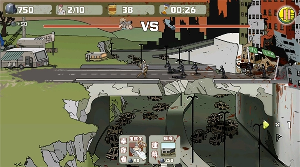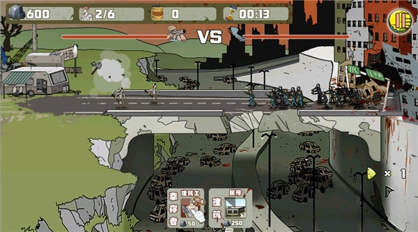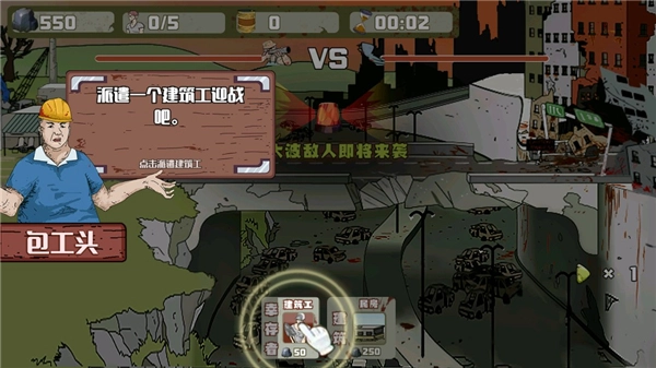 首先派遣一队建筑工人前去与僵尸作战。