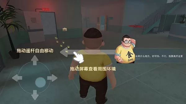 3、当首次加载场景时,伴随着旁白的介绍,你会置身于一个陌生的环境。在此环境中,会出现操作提示,例如拖动摇杆可实现自由移动,拖动屏幕能够查看四周环境。