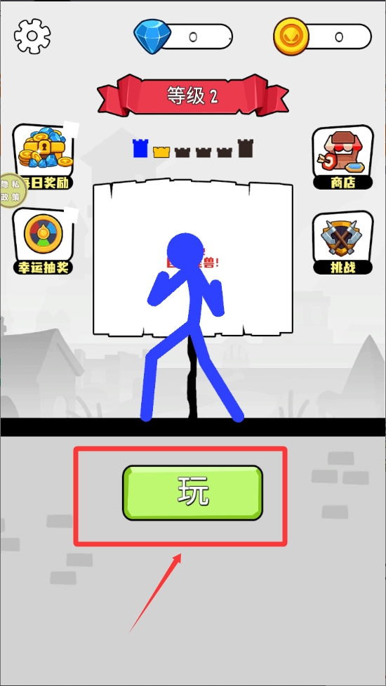 按一下屏幕中间的玩字开始挑战就可以玩了。