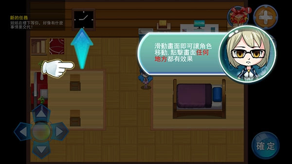 滑动画面能让角色移动,点击画面任意位置也有相同效果。