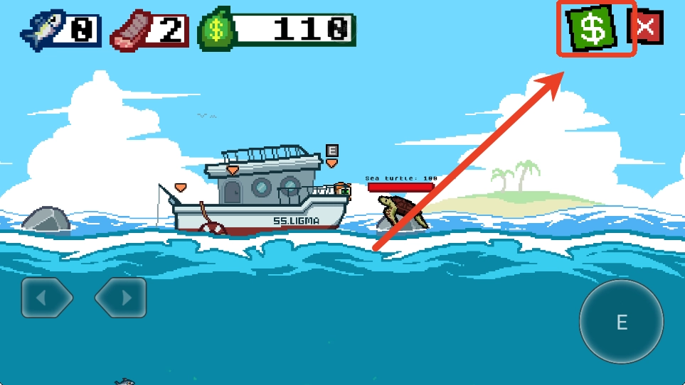 点击右上角的按钮就能进入商店,在那里可以购买并升级你的刀、钓鱼线和鱼钩。