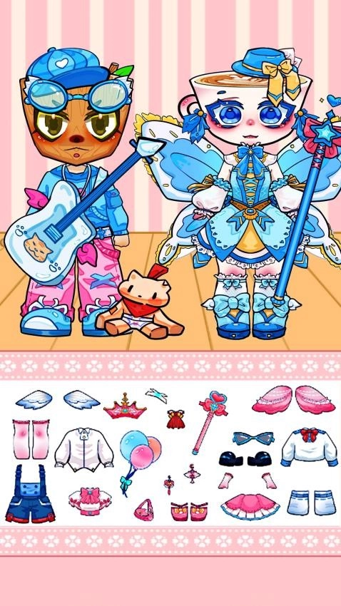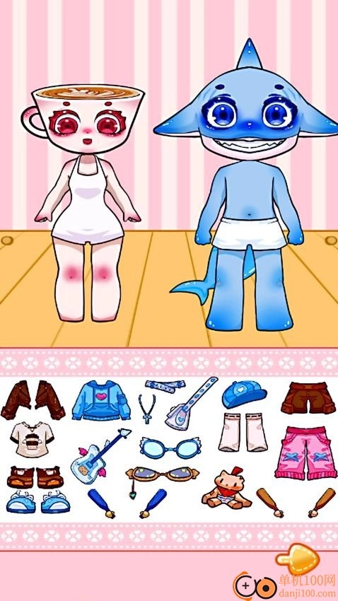 你可以把衣服、裤子、鞋子拖到角色身上,也能给角色添加手持的物品和各种配饰。