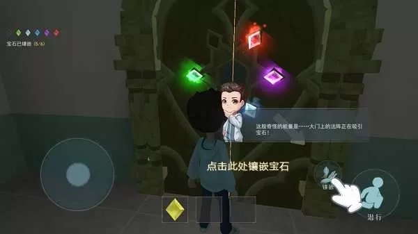 4、到了大门以后,点击此处镶嵌宝石,逃生完成!