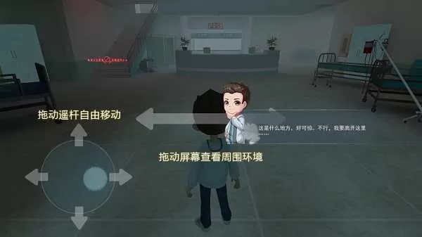 2、首次加载场景,在旁白的介绍中,你将来到陌生环境,在这里会有操作提示,如拖动摇杆自由移动,拖动屏幕查看四周环境。